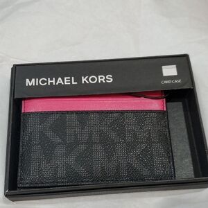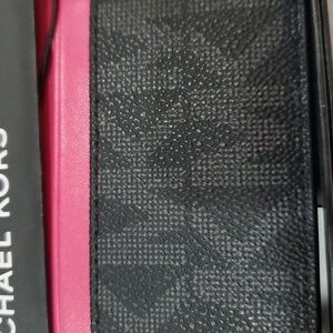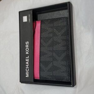 Michael Michael kors black monogram pink trim slim card case new with box