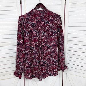 Michael Michael Kors Paisley Ruffled Button Front Blouse Red Blue Large