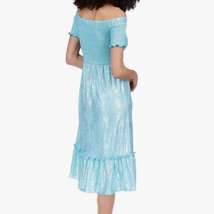 Michael Michael Kors Womens Turquoise Smocked Ruffled Drawstring Waist Dress S