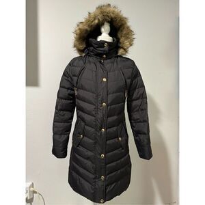 Michael Michael Kors black Down puffer foux fur trim Hooded winter coat Ps
