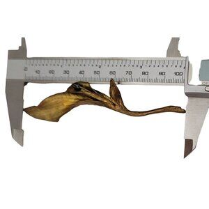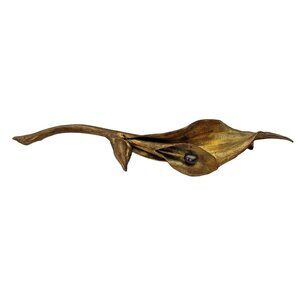 This Calla Lily Flower Brooch is hard to find, a fabulous piece crafted by Michael Michaud. It features a Calla Lily flower cast from an actual plant, expertly hand-crafted with rich and soft bronze-green patinas boasting exquisite details of a nature-inspired piece. It is accented with a peacock genuine freshwater pearl at the center. It measures approximately 4 inches in length, a substantial size to make a subdued statement pin for your lapel or outfit. The back has a locking pin mechanism which is sturdy and secure, allowing the piece to be easily attached to clothing or accessories.