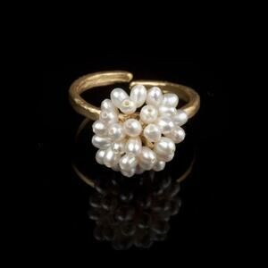 This exquisite ring features a delicate flower design crafted with lustrous white pearls set on a gold band. Perfect for adding a touch of elegance to any outfit.