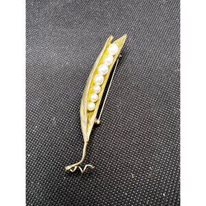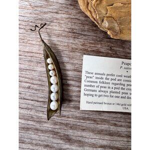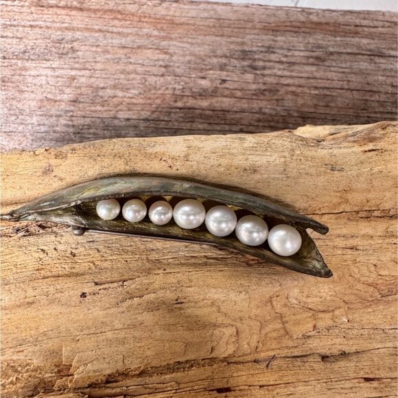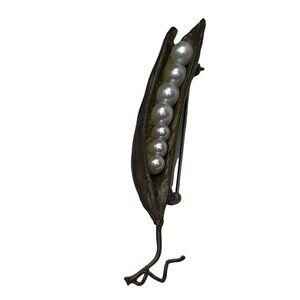 Michael Michaud Silver Seasons peapod brooch bronze freshwater pearl pin 3"