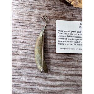 Nature-inspired artisan brooch by Michael Michaud from his Silver Seasons collection. The piece is cast from an actual pea pod, with a softly patinated bronze pod and stem and seven lustrous freshwater pearls nestled inside as the “peas.” Beautiful dimensional detailing and a whimsical curly vine at the top.