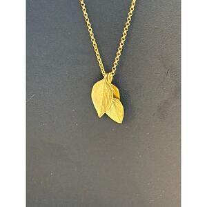 Cast in bronze with a hand patina finish with copper and a 24k gold finish. 22 inches with 2-inch extension. Pendant is 1 inch by 0.5 inches. A gorgeous piece by famous botanical jewelry designer Michael Michaud. It captures the beauty and exquisite detail of nature using soft patinas on bronze accented with pearls, beads, stones, and more. His attention to intricate detail results in true to nature, botanical jewelry. Michael Michaud uses an actual leaf, branch, or flower in place of the wax model. A mold is created around the botanical element and, as it is heated, the plant matter burns away and leaves behind a beautifully detailed mold of itself. Michael Michaud Jewelry is renowned for its beauty and workmanship and is featured in the finest museums, galleries, and specialty retailers around the world. Many collections are commissioned by leading museums such as The Victoria & Albert Museum, The Art Institute of Chicago, The National Gallery of Art, and the Château de Versailles.