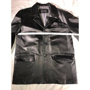 Michael Michelle Men Black Leather 3 Button 4 Pocket Blazer