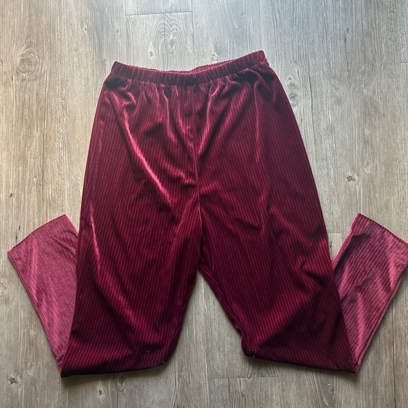 Michael Mims Kathy Coke wine red ridged stripe velour lounge pants
