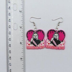 Michael Myers I'll Never Stop Chasing You Bleeding Heart Halloween Earrings NEW