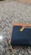 Elegant Michael Kors wallet with a blue nylon material body and brown accents. Features a convenient front zipper pocket.