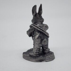 This charming Michael Ricker Pewter Rabbit Figure, circa 1997, features a whimsical rabbit playing a wind instrument. Numbered 241/3060, this vintage piece stands 3.5" tall with a beautiful silver finish.