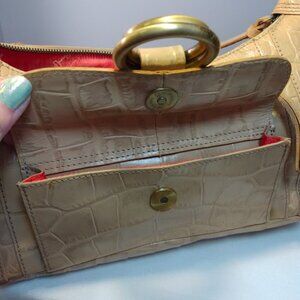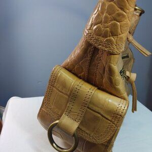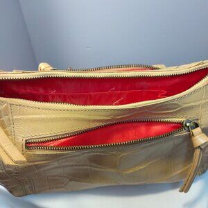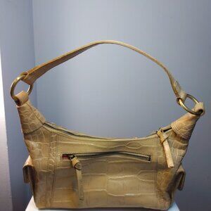 Michael Rome Designs Croc Embossed Leather Shoulder Hobo Bag Y2K Beige Yellow
