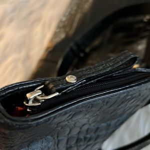Excellent condition. Crocodile embossed leather. Genuine leather. Measures 20β wide, 11β tall, 5.5β deep. 10β strap drop.