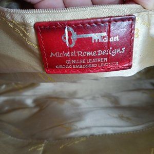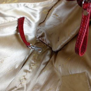 Red crocodile design purse tote with outside pocket interior cell phone pocket