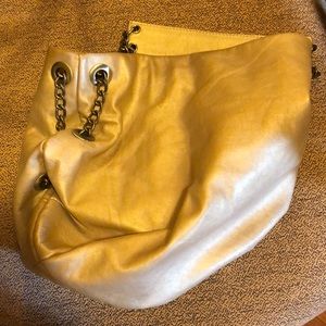 Gold cowhide, this shoulder bag is MADE IN ITALY by MICHAEL ROME DESIGNS.