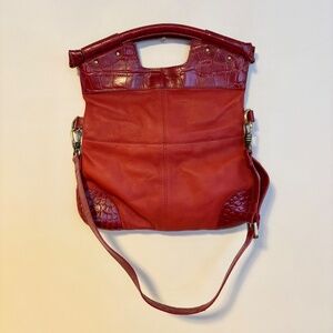 Michael Rome Leather Croc Print Shoulder Hand Bag Purse Magnetic Red 12” x 14”