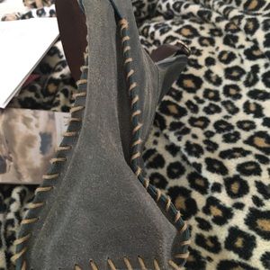 Blueish Grey purse with brown strap