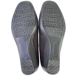 Style and versatility with the Michael Shannon Brown Suede Wedge Pumps. Slip on closure and elastic panel side to side across the top of the foot allow for ease on and off as well as all day comfort. Classic yet modern low heel height of 1.75" make these perfect for any day wear all year long. Dress them up or down with solid brown classic minimalist style. Please see photos for details and condition of these excellent condition pump.