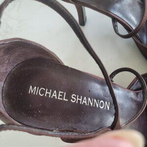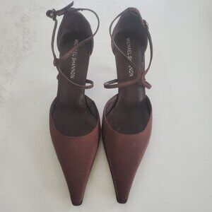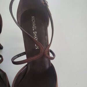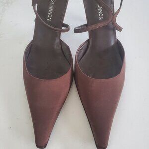 Michael Shannon NWOB Brown Silk Satin Criss Cross Strap Heels 10M