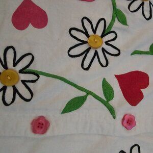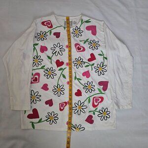 Michael Simon 100% Cotton Pink Red Embroidered Hearts Flowers Cardigan Medium