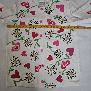 Michael Simon Women's 100% Cotton Pink Red Embroidered Hearts Flowers Cardigan Size Medium
