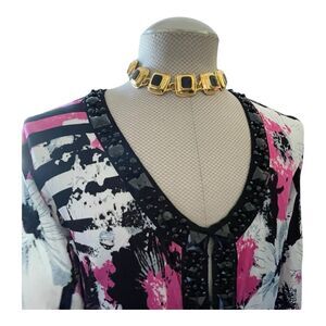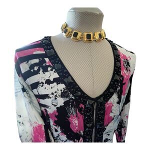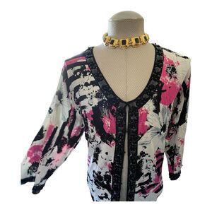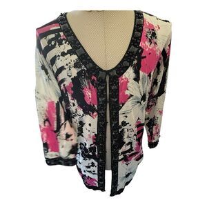 Michael Simon Artsy Embellished Cardigan Plus Size 2X Mature Beaded Colorful