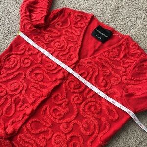 Michael Simon Bright Red Yarn Abstract Cardigan Sweater