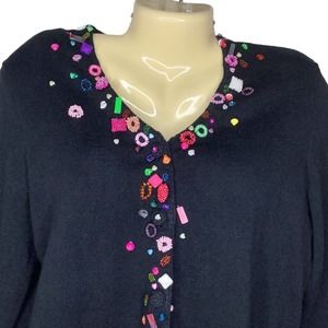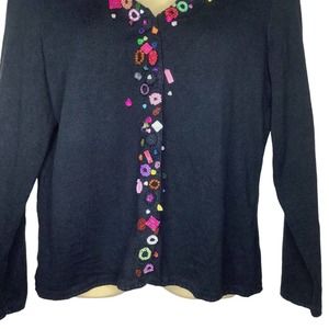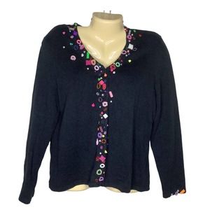 Michael Simon Cardigan Medium Black Colorful Beaded Sequin Hearts Embellished M