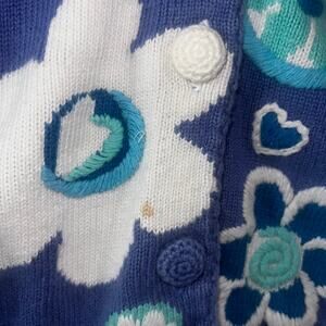 Michael Simon Cardigan Sweater Womens's Medium Blue Embroidered Floral Button