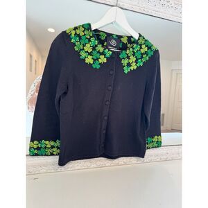 Michael Simon Event St.Patrick's Clovers Shamrocks Irish Sweater Cardigan Small