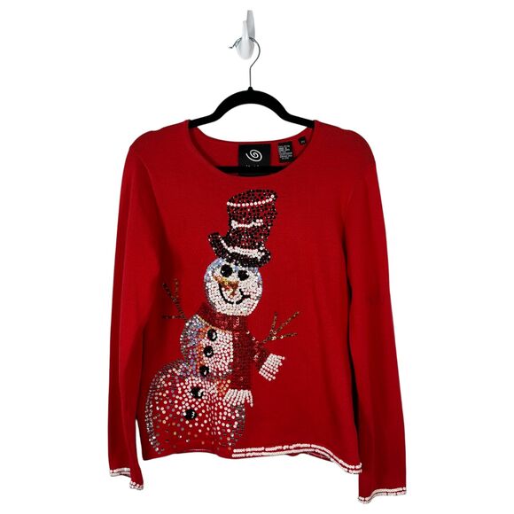 Michael Simon Event Vintage Snowman Red Sequin Sweater Women's Size Petite Small