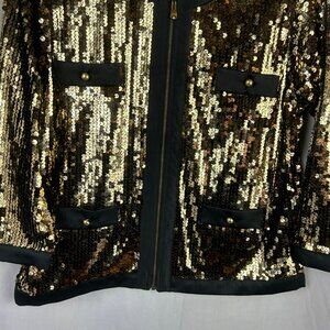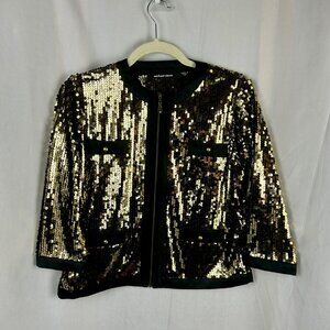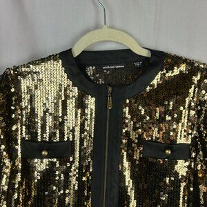 Michael Simon Gold Sequin Jacket Women Small Zipper Front Event Party Bling