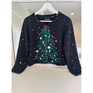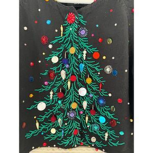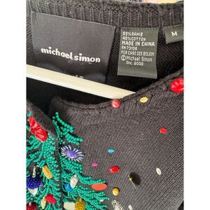 Michael Simon Holiday Beaded Cardigan Sweater Christmas Tree Medium