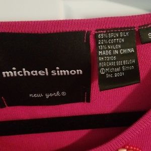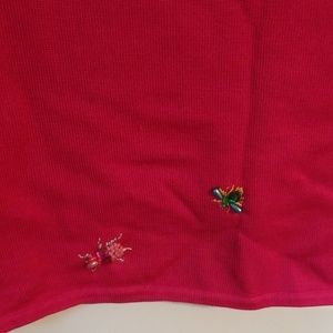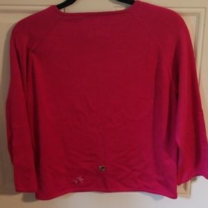 Silk, cotton,nylon blend pink insect sweater. Buttons down the front with two insects on the back of the sweater. Sweater is in good condition.