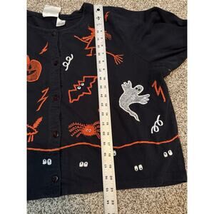 Michael Simon Lite Halloween Cotton Cardigan Black Pumpkin Ghost Cat Women’s 2X
