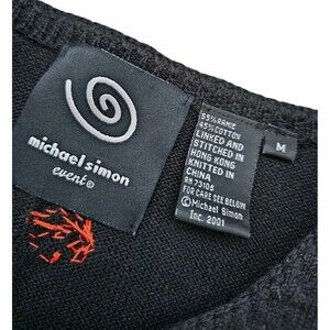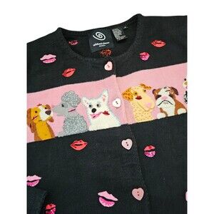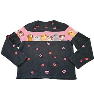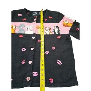 Michael Simon M Cardigan Dog Sweater Kiss Lips Embroidered Beaded Black Pink