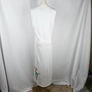 Michael Simon Medium White Tank Maxi Dress Embroidered Flowers Beach Vacation