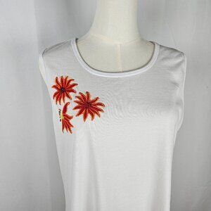 Michael Simon Medium White Tank Maxi Dress Embroidered Flowers Beach Vacation