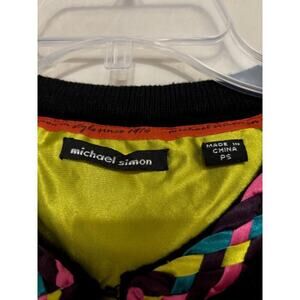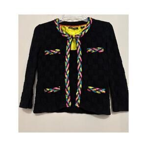 Michael Simon Multicolor Braid Basketweave Cardigan Sweater Black Small Petite