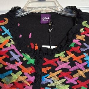 Michael Simon NWT women’s black colorful tulle cardigan sweater size large