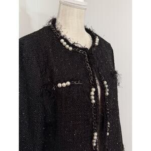 Michael Simon Pearl Embellished Tweed Eyelash Black Jacket Blazer Size Medium M