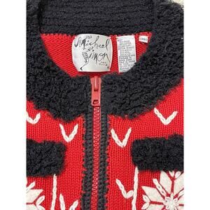 Michael Simon Red Zipper Cardigan Cropped Sweater Snowflake Medium vintage 90s