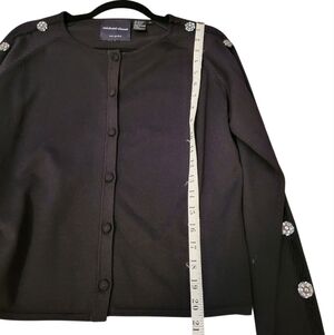 Michael Simon Silk Black Button Cardigan Sweater Embellished Rhinestone Medium