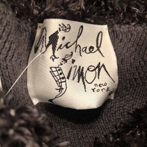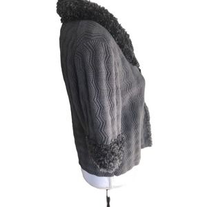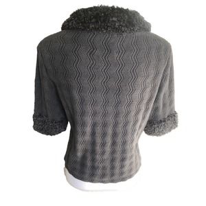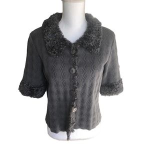 Michael Simon Sweater Short Sleeve Faux Fur Collar Sleeve Beautiful Heavy Knit
