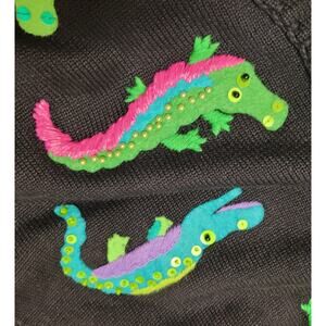 Michael Simon Sweater Size L Cardigan Black Green Beaded Alligators Button Vtg