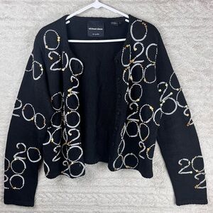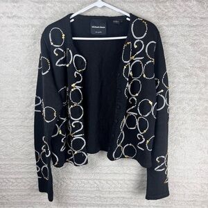 Michael Simon VTG Y2K Cardigan Sweater Year 2000 Theme Beads & Pearls Black L