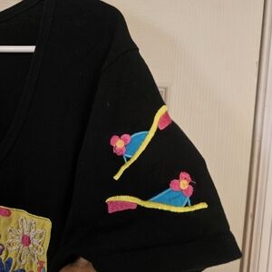 Michael Simon Vintage Beach Vacation Embroidered Patchwork Tshirt Dress Size XL in good vintage condition does have slight signs of wear because it's black . but no holes or any of that super cute! measurements Ptp 21in Length 42in