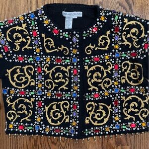 Michael Simon Vintage Embelished Cropped Sweater Cardigan Regal Black Size 2