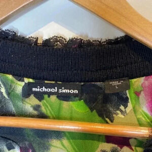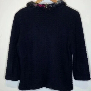 Michael Simon Womens Black Rainbow Ruffle Cardigan Sweater Size Large Preppy