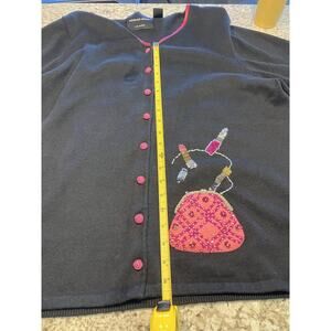 Michael Simon Womens Size 2XL Black Pink Cardigan Sweater Lipstick & Purse
