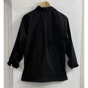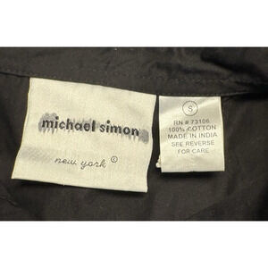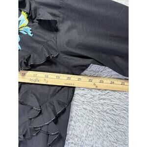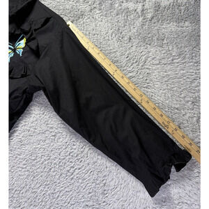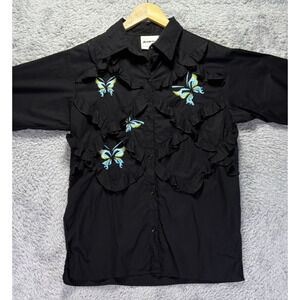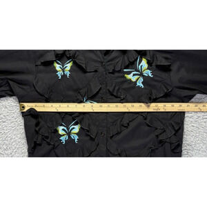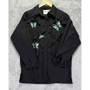 Michael Simon Womens Small Black Embroidered Blue Butterflies Button Down Up Top